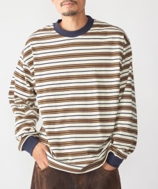 〔MEDIUM〕【SHIPS別注】AIRTOWNE: マルチ ボーダー ロングスリーブ Tシャツ