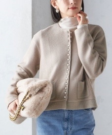 〔ONE SIZE〕〈手洗い可能〉パール モチーフ ボタン ジャッカル カーディガン