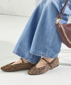 程よいゆとり。やや短丈。骨盤にかかる裾丈。