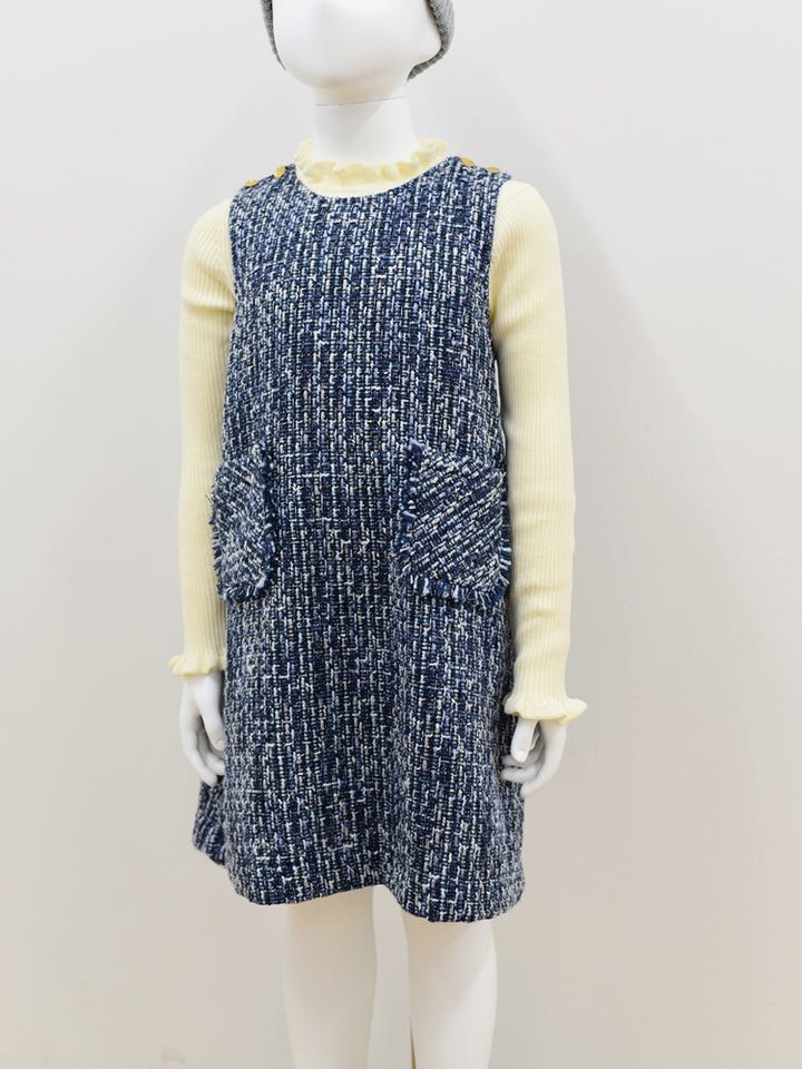 キラキラしたラメ糸が魅力のツイードジャンパースカート。