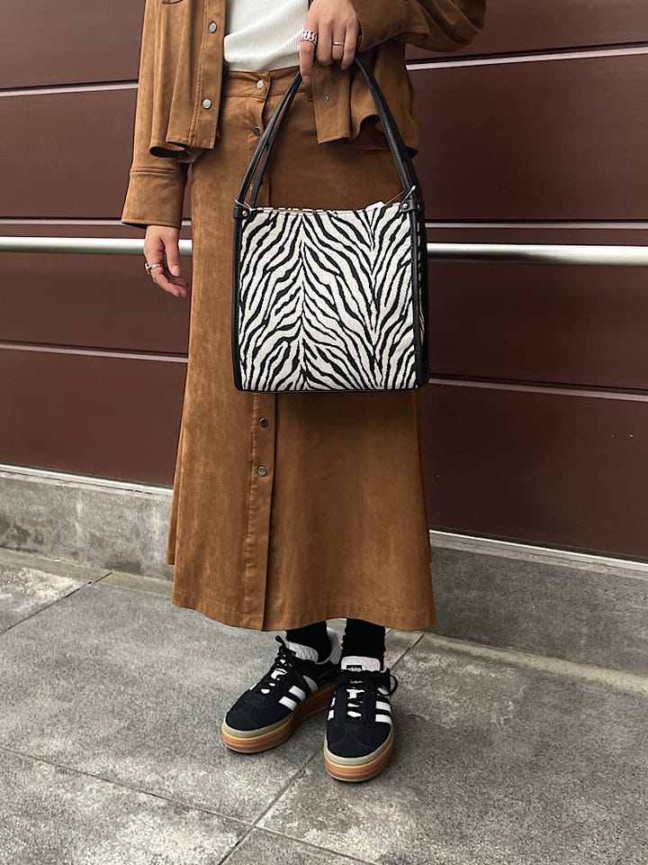 〔ONE SIZE〕SHIPS any: レオパード ゼブラ スクエア トート バッグ