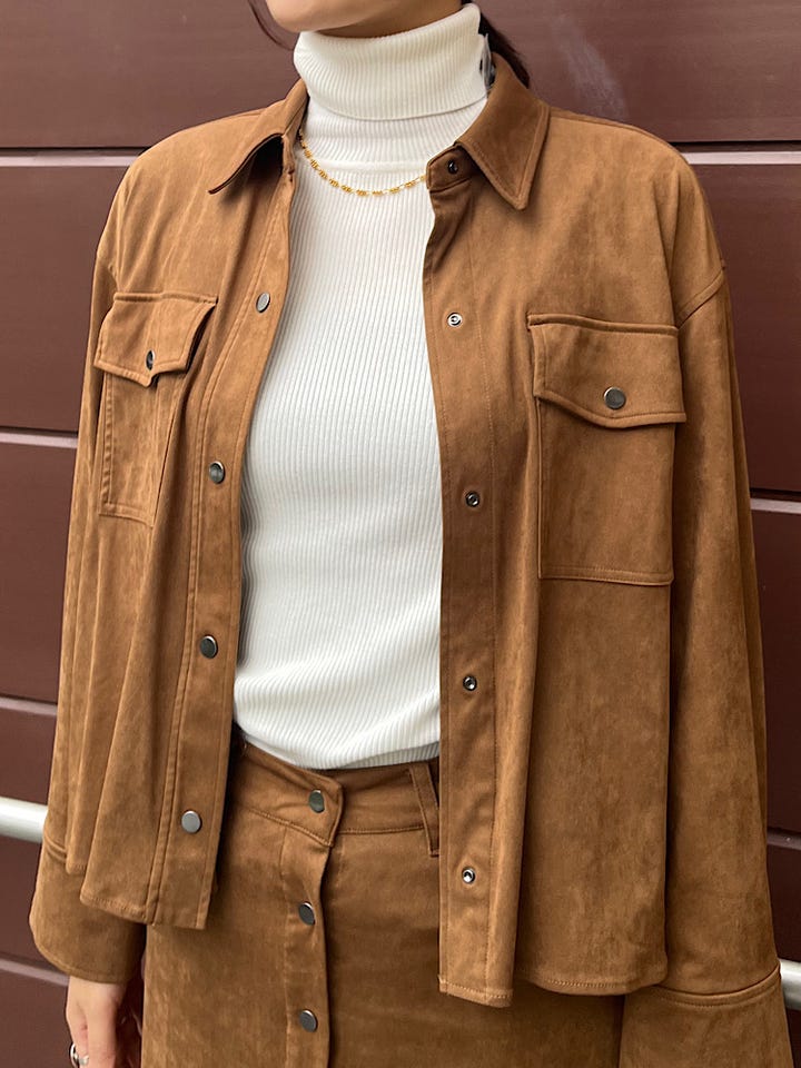〔ONE SIZE〕SHIPS any: ポリエステル スエード ショート シャツ ジャケット
