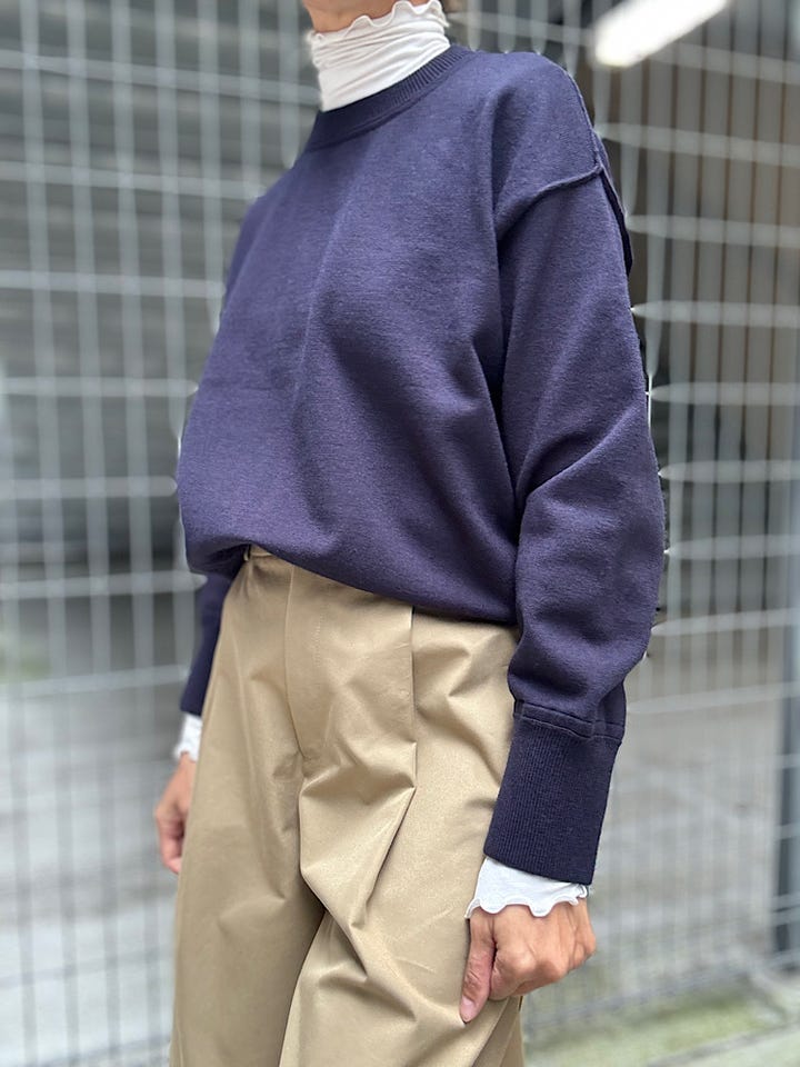【素材感・着心地】スウェット感覚で着まわしが自由なニット。