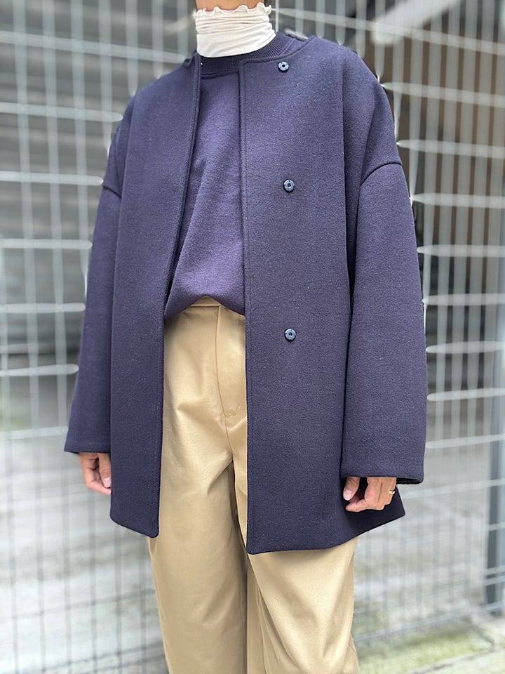 〔ONE SIZE〕SHIPS Colors:〈手洗い可能〉ジャージーメルトン ノーカラー コート◇