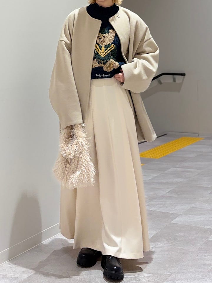【素材感・着心地】白はやや透け感があるが濃い色でなければ気にならずイペチコートやタイツがあれば濃い色でもそれほど気になりませんでした。冬らしい温かみのある白の色味で沢山活躍しそうです!