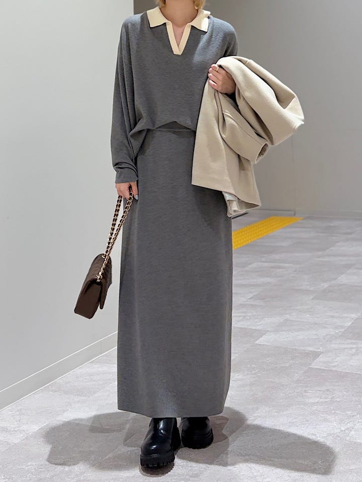 〔ONE SIZE〕SHIPS Colors:〈手洗い可能〉スキッパー ニット × スカート セットアップ◇