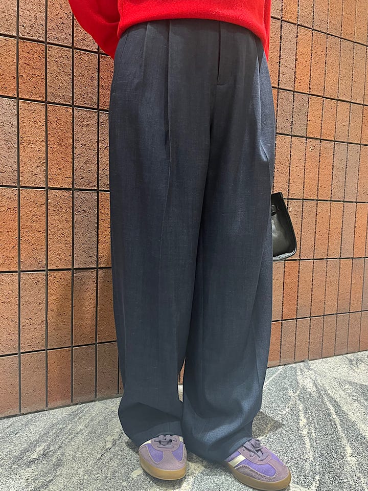 サイズ感:丈感も長めで全体的にゆったりしていますが、スッキリとしたシルエットです。