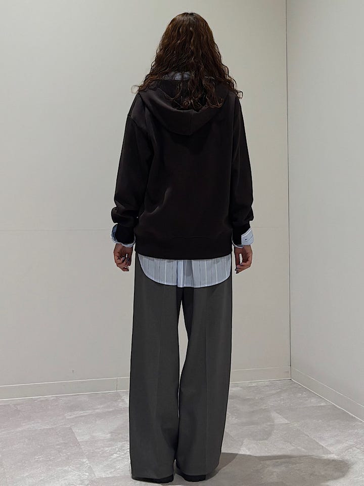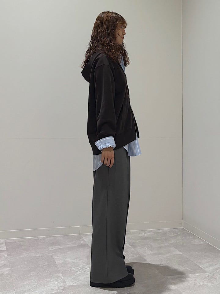 ヒップから足元にかけてゆとりあるワイドシルエット。ウエストはハイウエストでちょうど良いです。