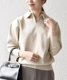 着用アイテム:パールモチーフ カラー スキッパー ニット ホワイト