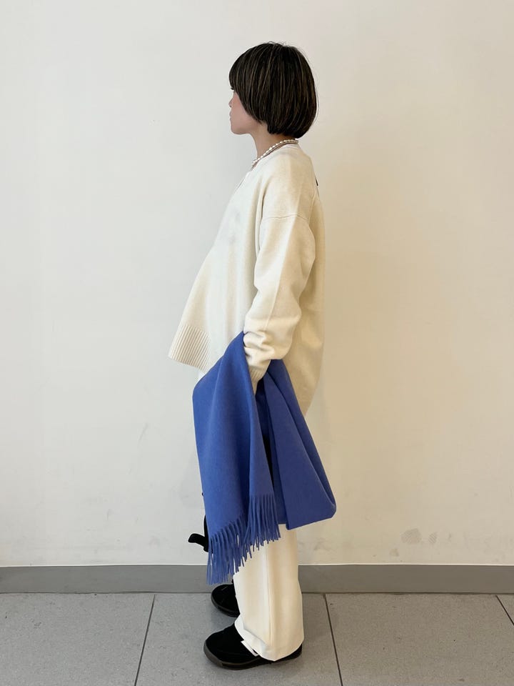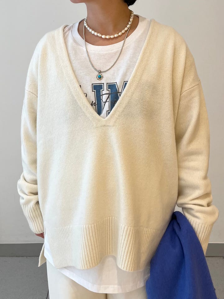 着心地:カシミア入りで軽く暖かいです。深めのV襟で首周りがスッキリします。