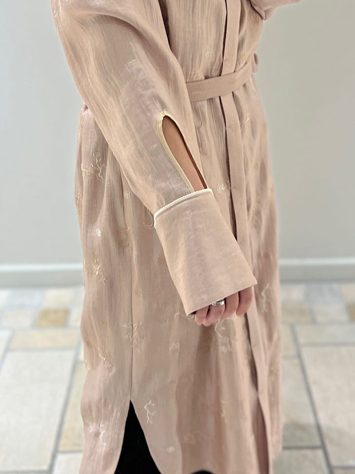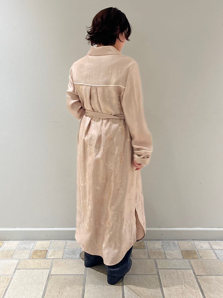 着心地:柔らかくツヤ感あるお素材が上品見えする一枚です。お袖のカットデザインやパイピング、全体的に刺繍が施され華やかな印象が感じられます。