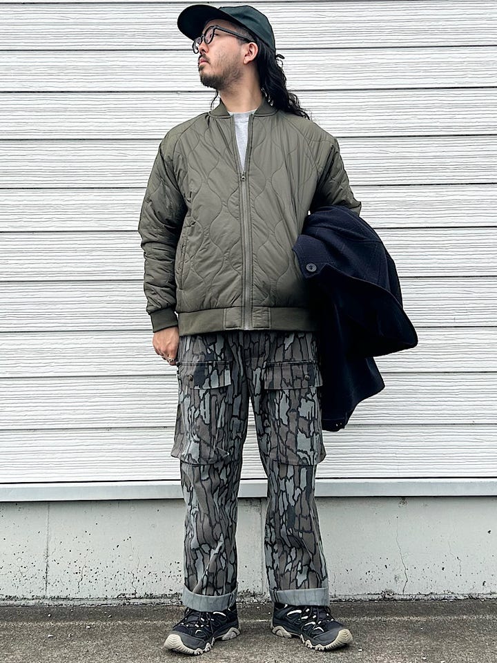 身幅がそこまで広くないので、アームホールに余裕のあるアウターであればインナーダウンとしても利用いただけます。