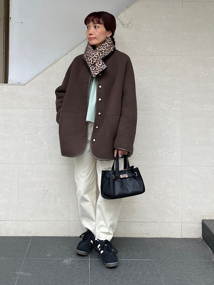 着心地:ボアとフリースのリバーシブルでコーディネートに合わせて着用出来ます。ご自宅でのお洗濯が可能なのでデイリーにお使いいただけます。