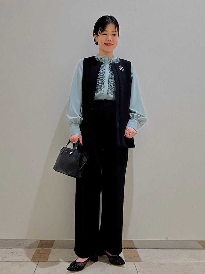 サイズ感:体のラインを拾わないセミワイドシルエット。後ろゴム仕様で窮屈感ない着用感です。