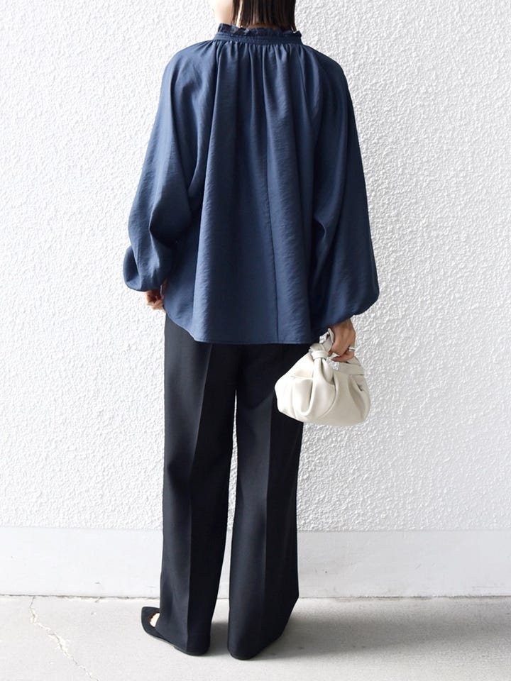 サイズ感:たっぷりとギャザーが入っていますが、落ち感のある素材のため着ぶくれせず、ゆったりと着られます。