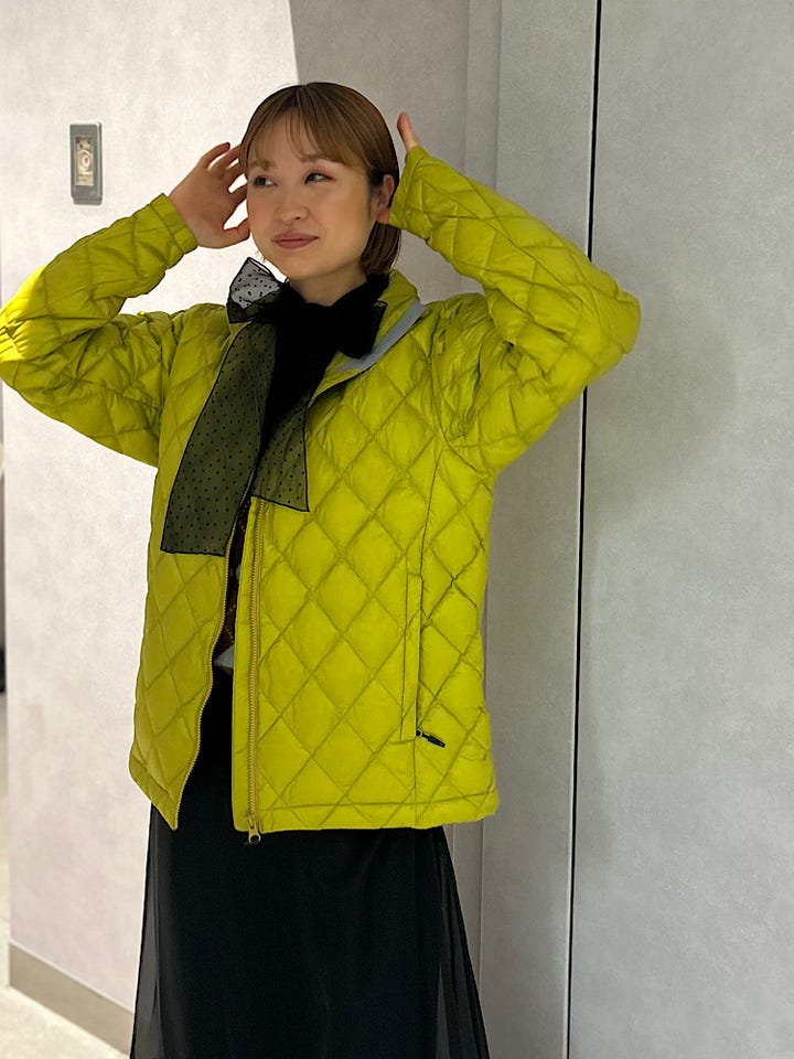 素材感・着心地:メンズサイズですが、コンパクトな作りで女性でも着やすいフィット感です。ジャケット感覚で着用できる、とても軽いアウターです。ショート丈が今っぽくちょうど良いカジュアルさをプラスしてくれます。