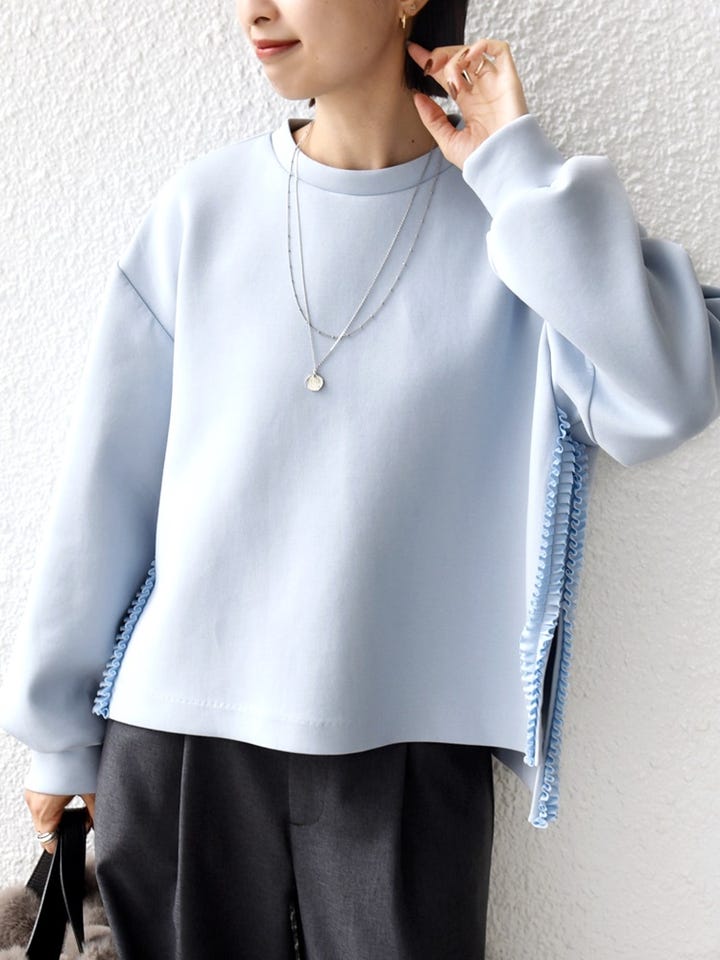 〔ONE SIZE〕【WEB限定】〈手洗い可能〉サイド スリット フリル ダンボール カットソー