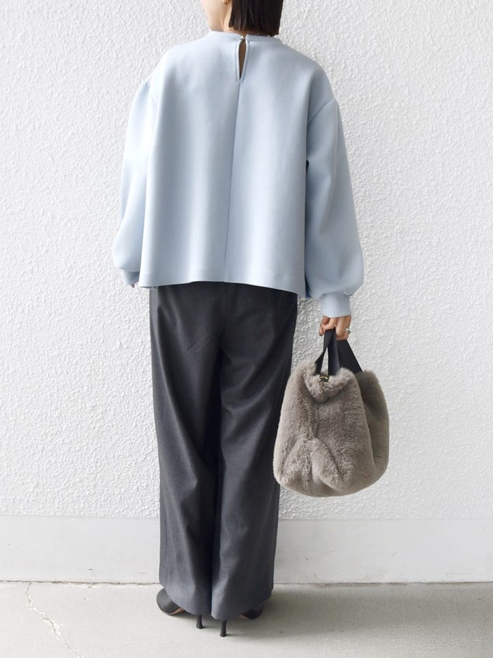 着心地:ジャージー素材なので軽くて伸縮性があり、快適な着心地です。秋から春まで長いシーズン着回せる程よい肉感で、自宅でお手入れができる点もデイリーユースに最適です◎