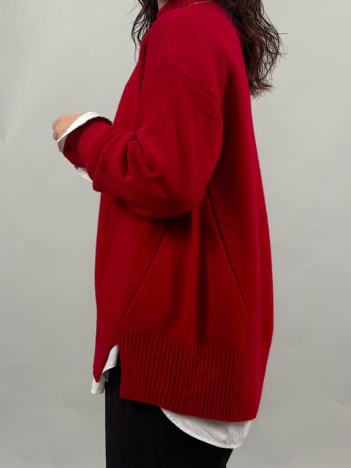 やわらかくなめらかなウールカシミヤ素材。ふんわりとした素材感が上質で綺麗です。ネックは高すぎず締め付け感なく着ていただけます。立体的なシルエットが綺麗です◎