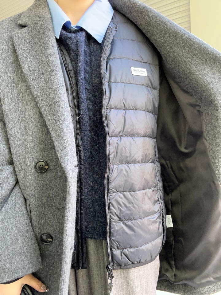 軽く薄いですが、ダウンが90%入っている為とても暖かいです。コート一枚で寒い時などにインナーとして使うのも◎