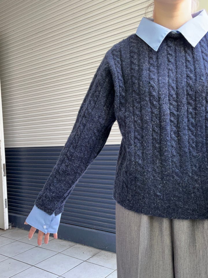 〔ONE SIZE〕SHIPS Colors:〈手洗い可能〉シャツ レイヤードライク ケーブル ニット