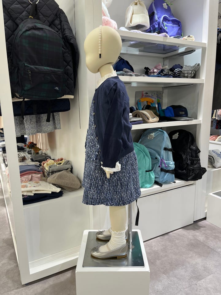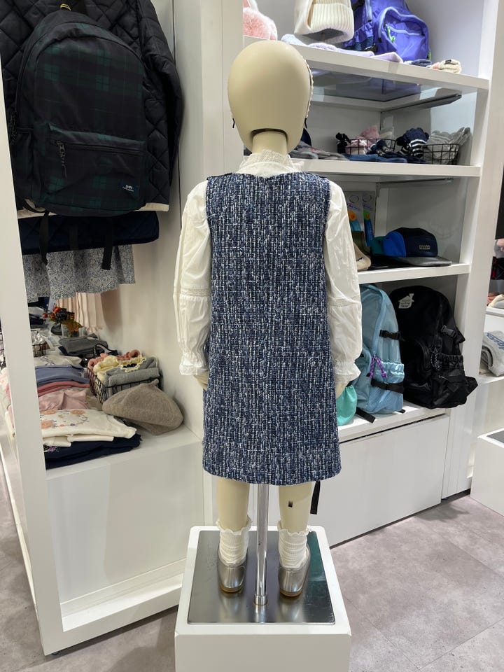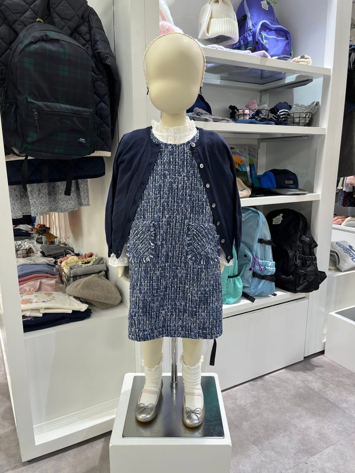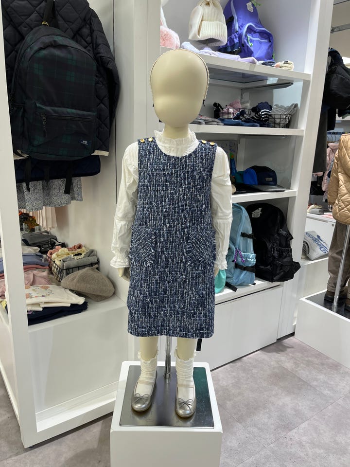 以前にもご紹介しましたツイードジャンパーワンピースのお色違いを、セレモニー用にコーディネイトしました。