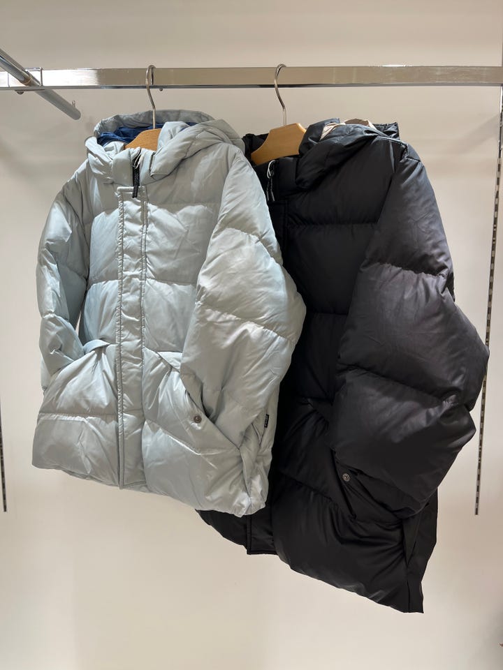 珍しいペールトーンカラーが特徴的なダウンに、ヴィンテージ風プリントのスウェットを合わせました。