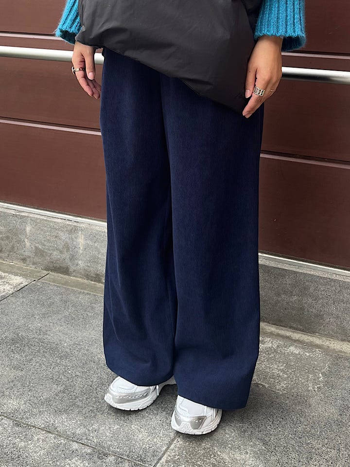 SHIPS any:〈手洗い可能〉コーデュロイ サスペンダー付 ハイウエスト ワイド パンツ