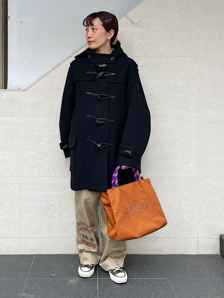 着心地:見た目ほど重くなく着やすいです。コート自体もかなり暖かいですし、中にも着込めるので真冬もお使いいただけます。