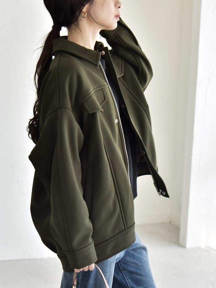 〔ONE SIZE〕quaranciel:〈洗濯機可能〉ダンボール 裏起毛 コクーン オーバー シャツ ジャケット