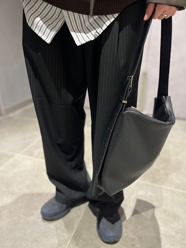 サイズ感: 太めなシルエット。ウエスト周りは細めで裾はワイドなシルエット。