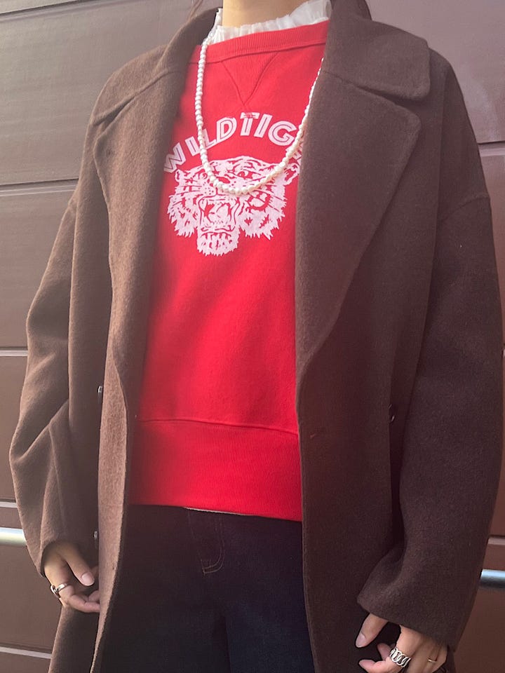 素材感・着心地: ビックシルエットでゆったりとしたサイズ感。袖は長めなので折り返しで着用しても◎