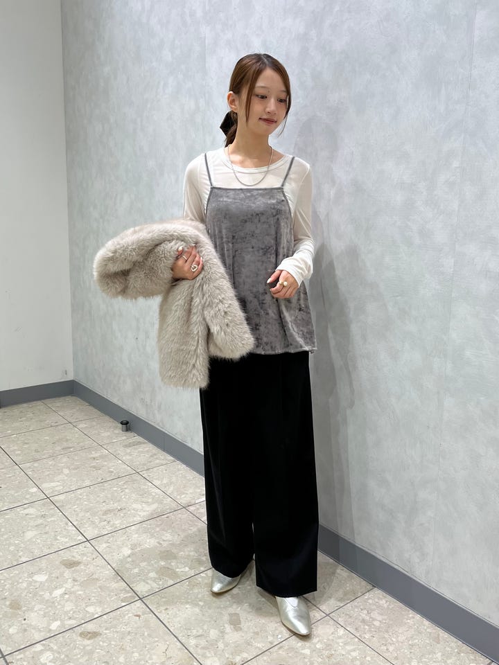 〔ONE SIZE〕〈手洗い可能〉スノー クラッシュ ポリエステル ベロア サイド スリット キャミ