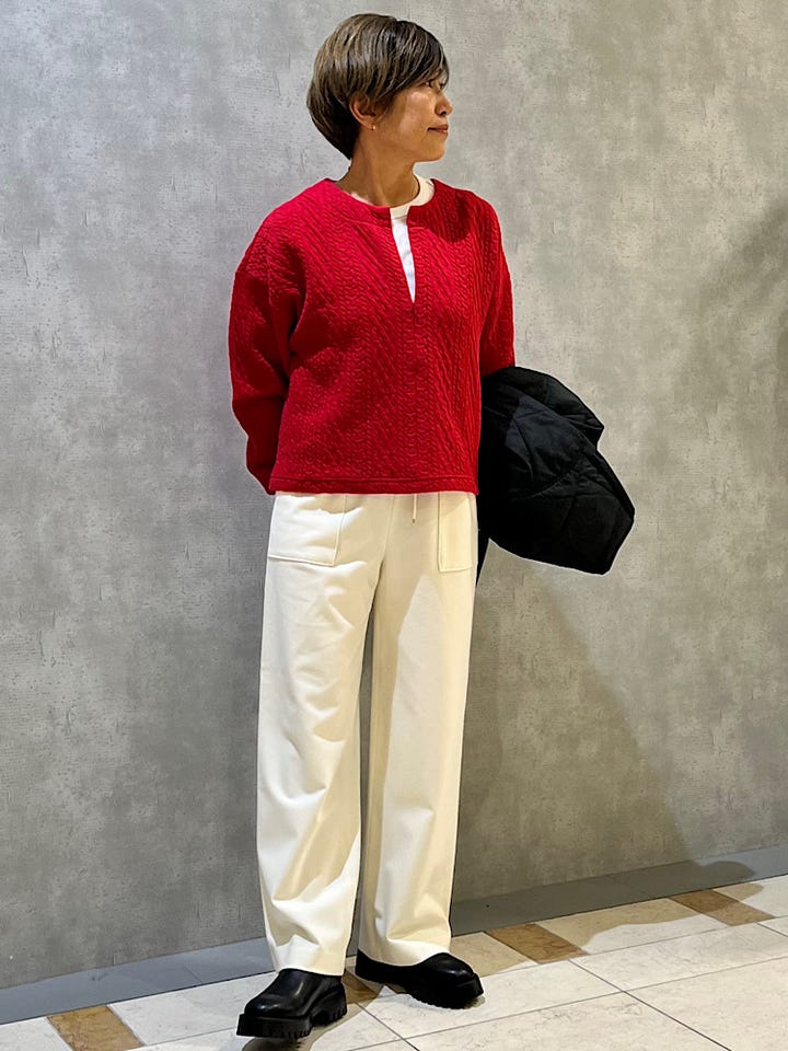 サイズ感 : 身幅やアームホールもゆったりしていますのでインナーもタートルネックなども着用出来ます。