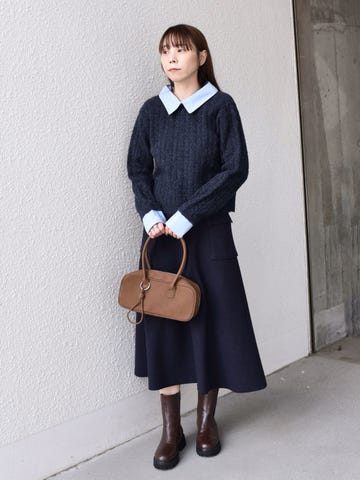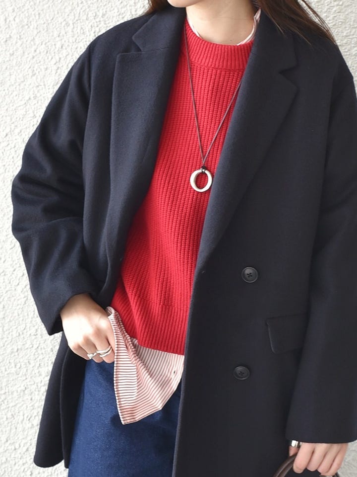 素材感・着心地:畦編みの凹凸感が表情があり、無地ながらこなれ感がある1枚です。