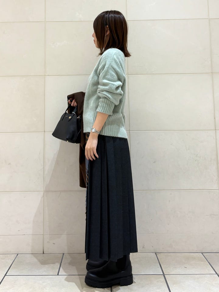 柔らかく動きやすい素材です。なめらかで上品な印象で、きれいめでもカジュアルでも合わせやすい万能アイテムです。軽いですがしっかりとした生地で、真冬でも活躍します。