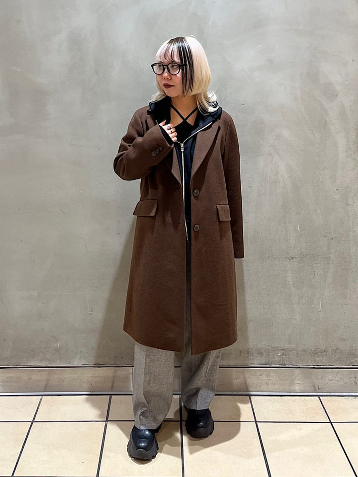 サイズ感:程よいゆとりで昨年のチェスターコートをベースに着丈を長くアップデート。