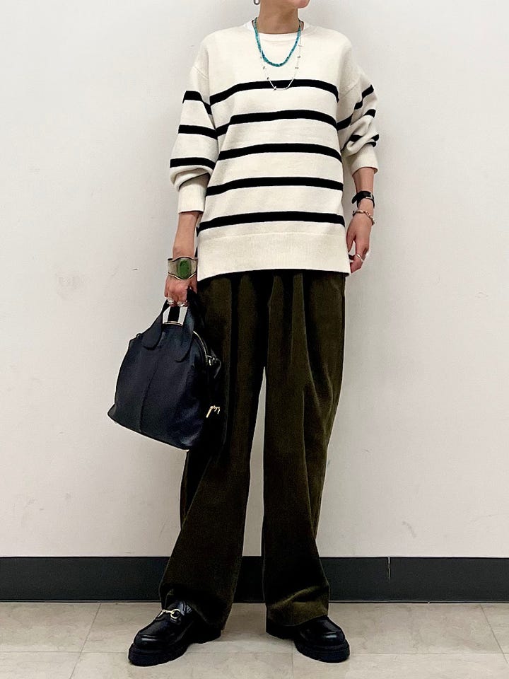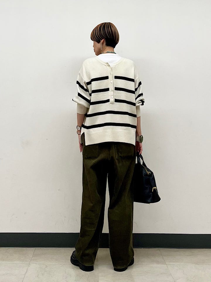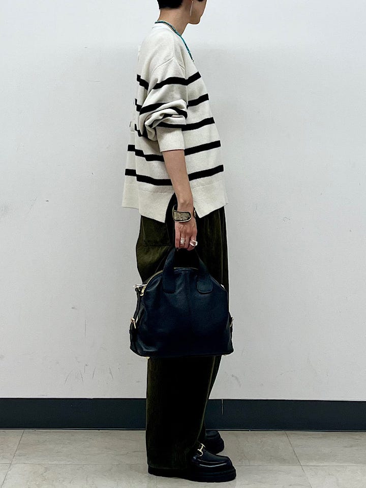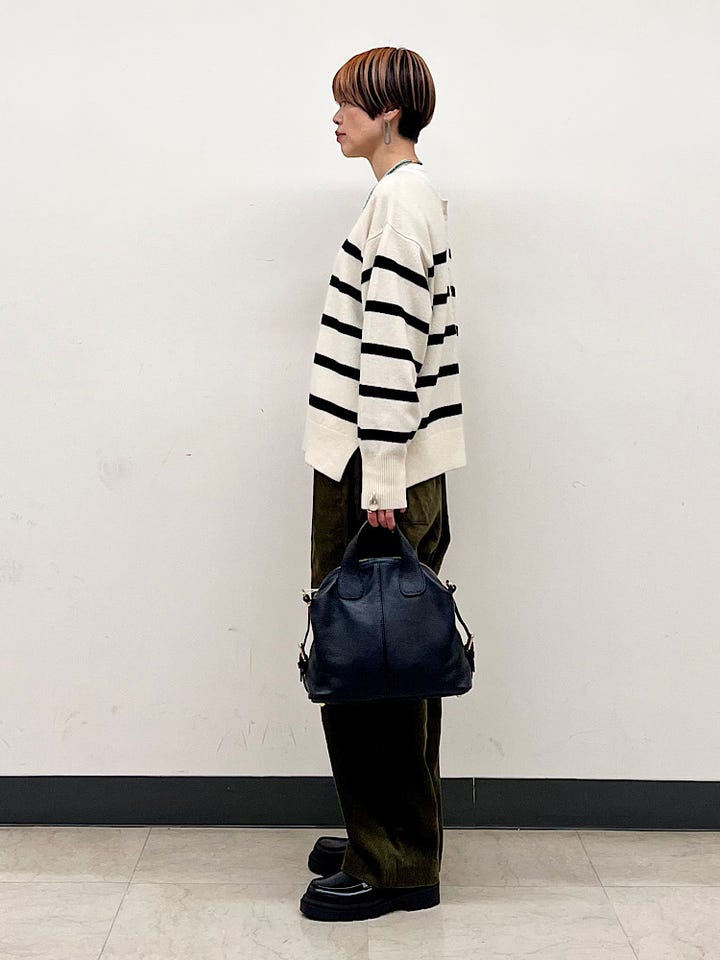 サイズ感:やや大きめ。ボリュームを出したいので、少し腰位置を下げて着用しています。