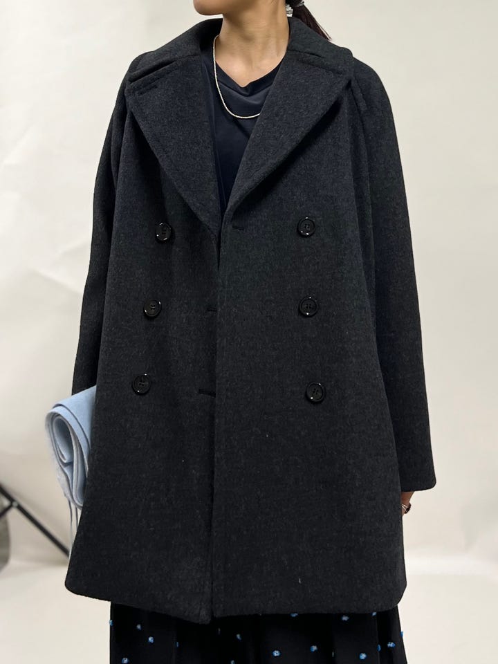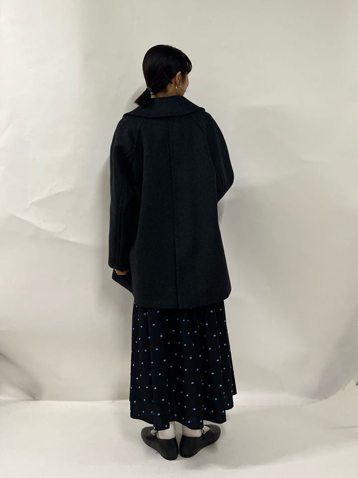 身幅・腕周りともにかなりゆったり。ラグランスリーブで中のトップスを選ばず着用頂けます。