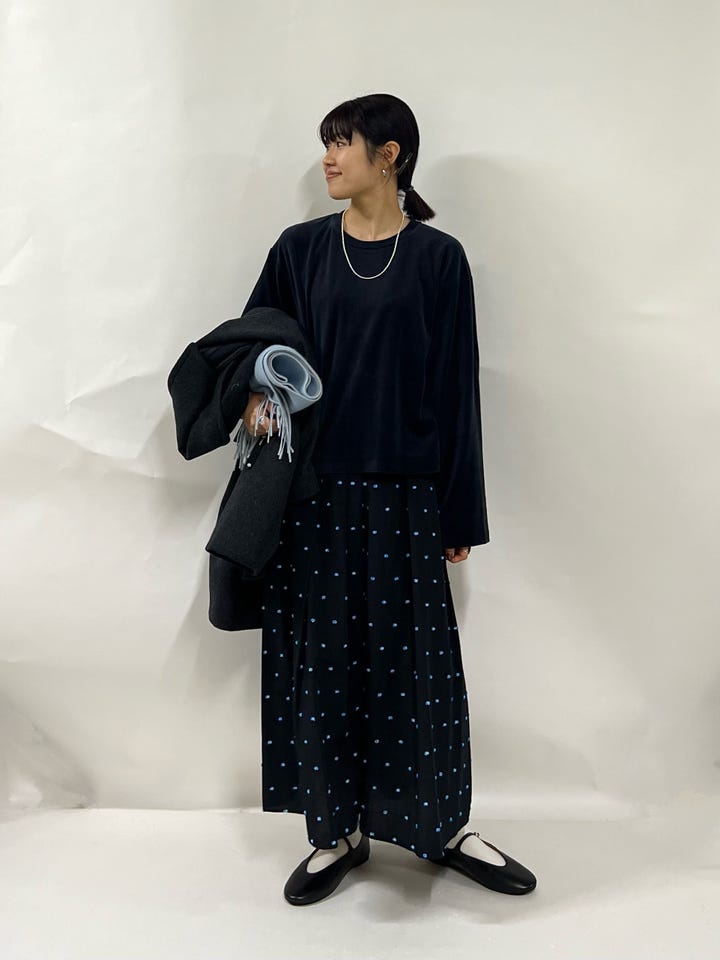 全体的にゆったり。お袖もワイドで一枚出来ても可愛いシルエットです。