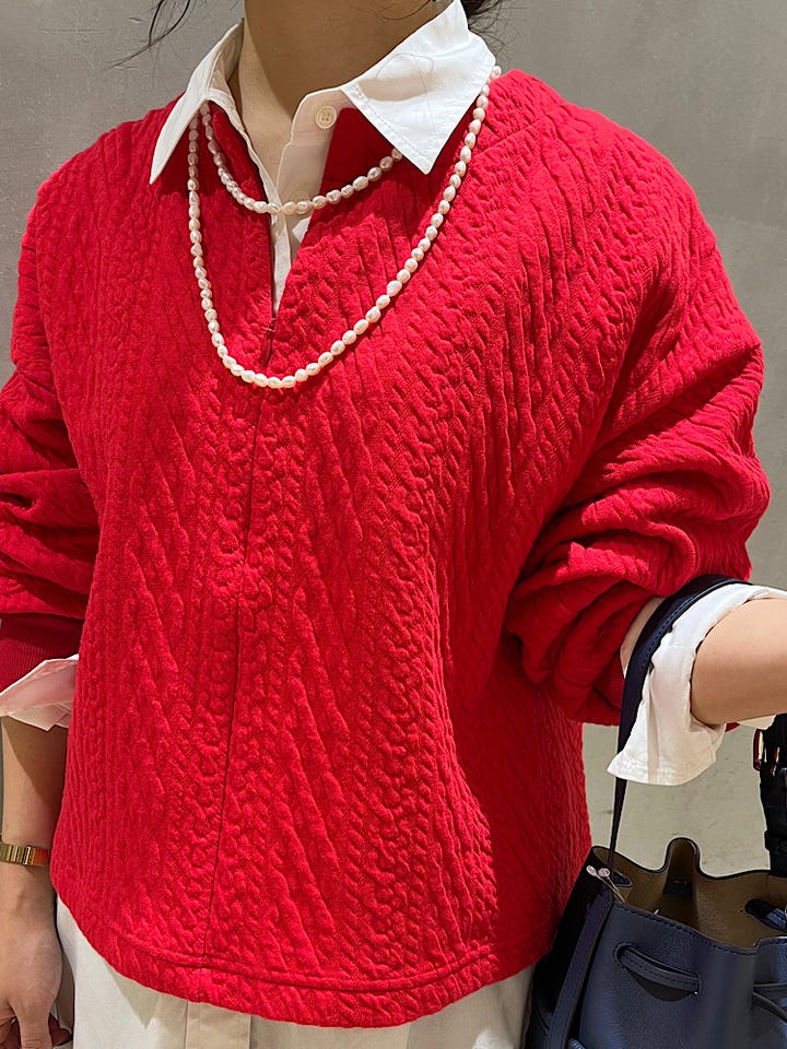 〔ONE SIZE〕《一部追加予約》〈手洗い可能〉ケーブル ジャージー スキッパー プルオーバー