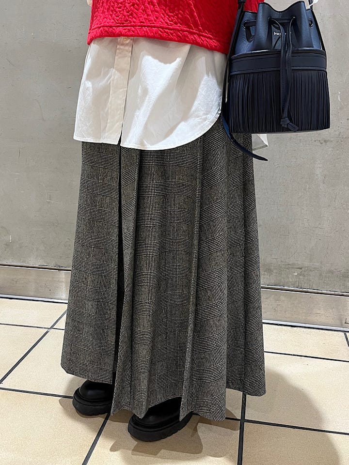 〔36〕SHIPS Primary Navy Label:フラノ パネル チェック フレア スカート