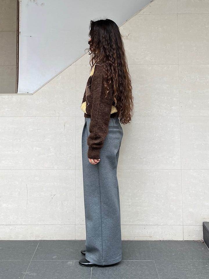 〔ONE SIZE〕JANE SMITH:〈洗濯機可能〉7G ウール ジャカード アーガイル Vネック ニット