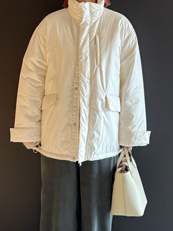 【着心地】 凄く軽くて丈感もヒップ隠れるぐらいの長さです。スタンドネックなので首までしっかり暖かいです。1枚持っておけば重宝するアイテムです!