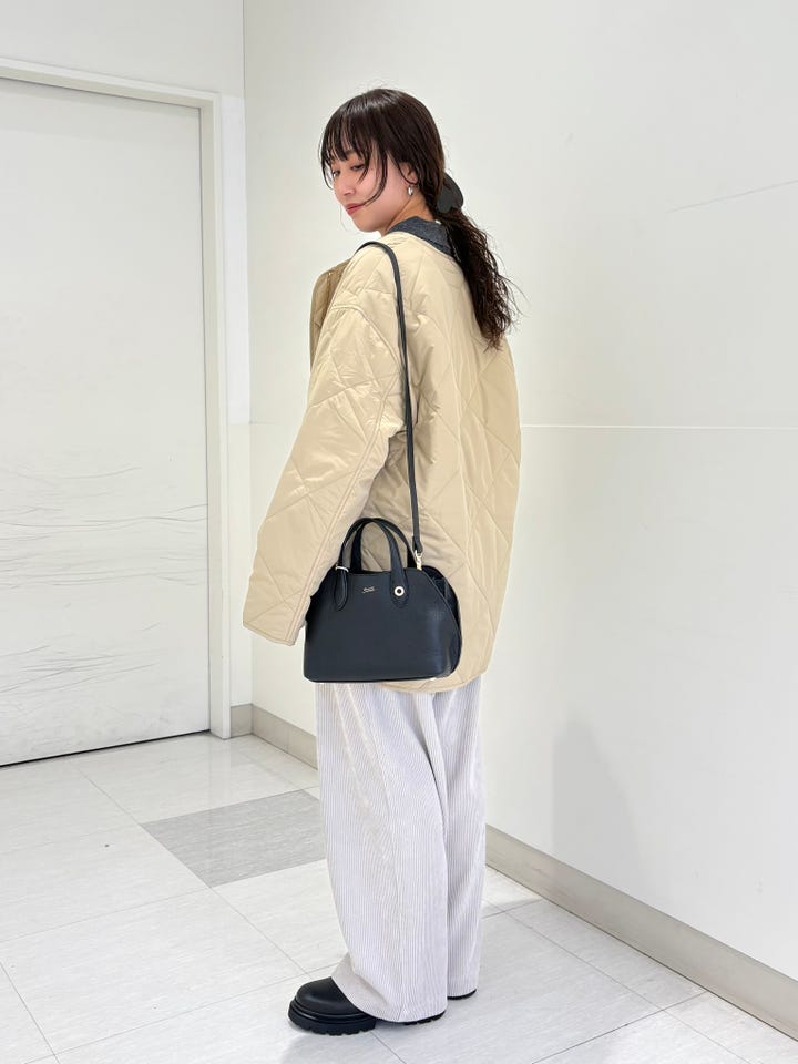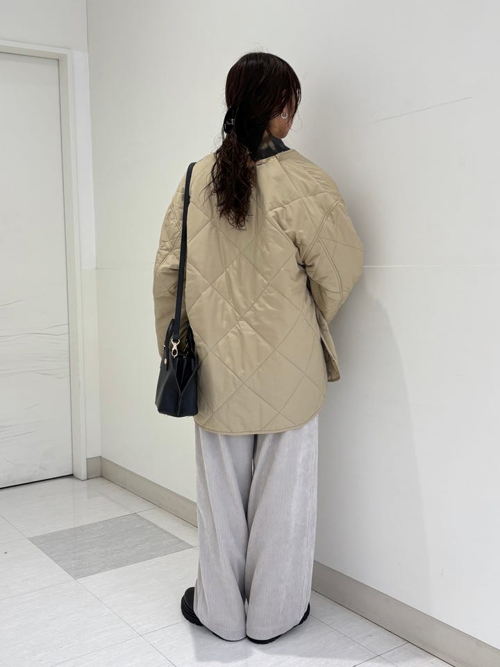 かなりゆったりとしたサイズ感で、インナーに厚手のトップスを入れたり、重ね着して着れます。着膨れしやすいキルティングコートですが、コードを絞って再度のジップを開けるとスッキリ見えします。今からの時期ちょうど着ていただけます。お家でお洗濯もできるので、お子様がいらっしゃる方にもおすすめです!