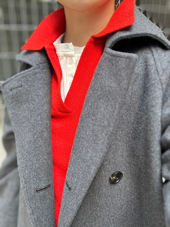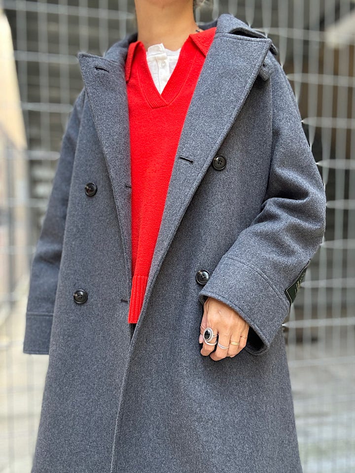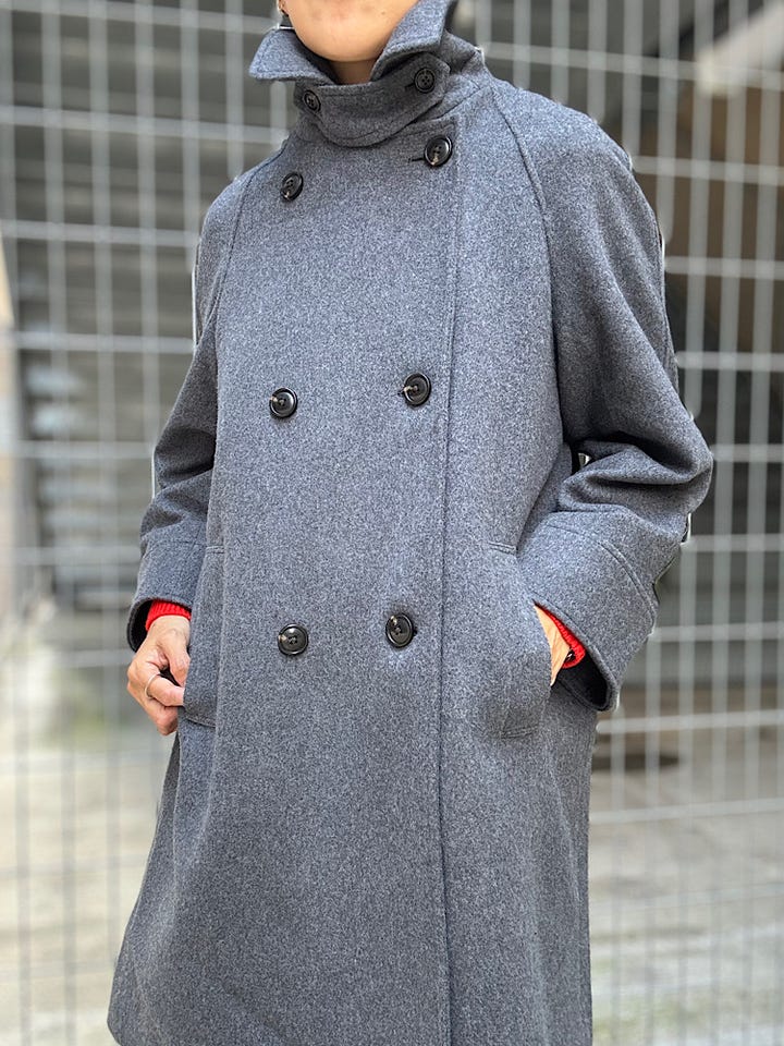 【素材感・着心地】 ウール100%であたたかく、オンオフ問わず着用できるミディアムコート。
