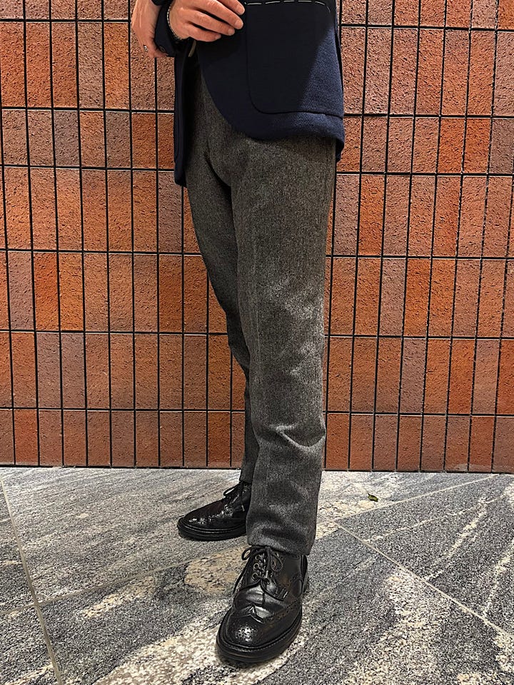 着心地 :紡毛系のホームスパン素材ですが、見た目と違って凄く軽い仕上がりとなってます。