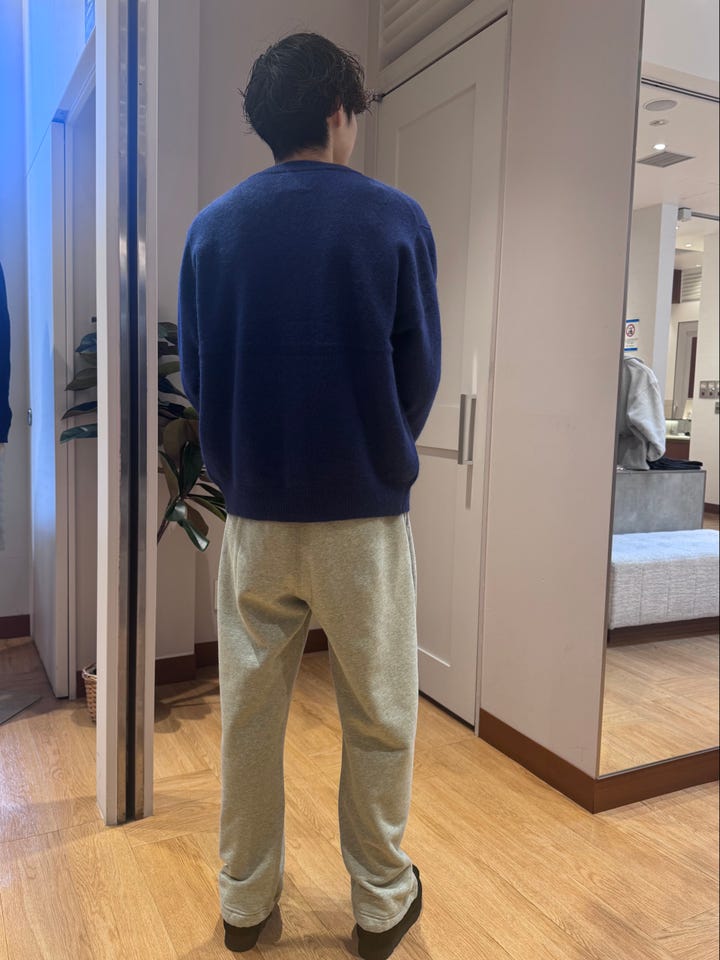 【素材感・着心地】程よくテーパードが入っているので、スウェットパンツですがキレイ目に着用できます◎