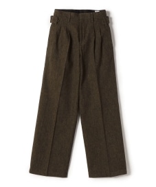 着心地:メンズライクなウールコットンのがっしりした素材感のパンツです。天然素材が見た目でも着用感でもしっかり感じられる1枚です。