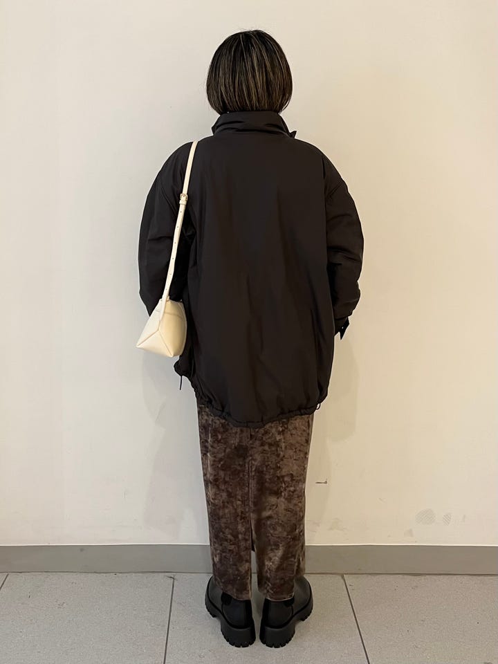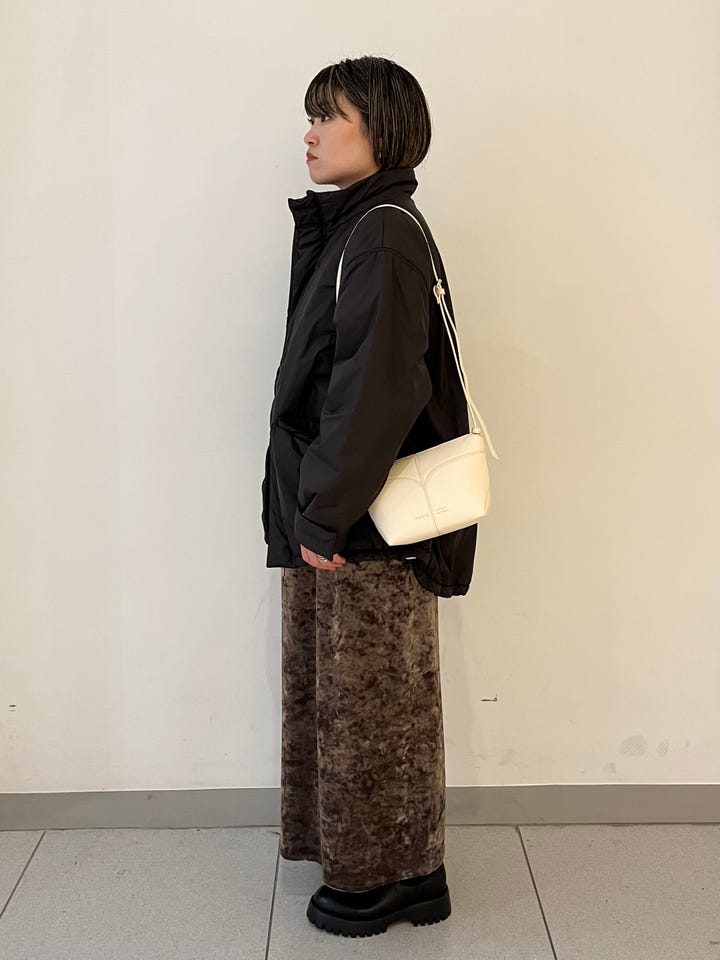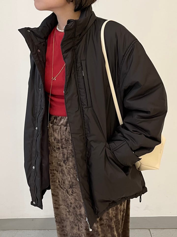 着心地:中綿なのでかなり軽いです。裾がドロストになっておりシルエットの変更が可能です。ミディアム丈でさまざまなボトムスに合います。スカート合わせおすすめです◎